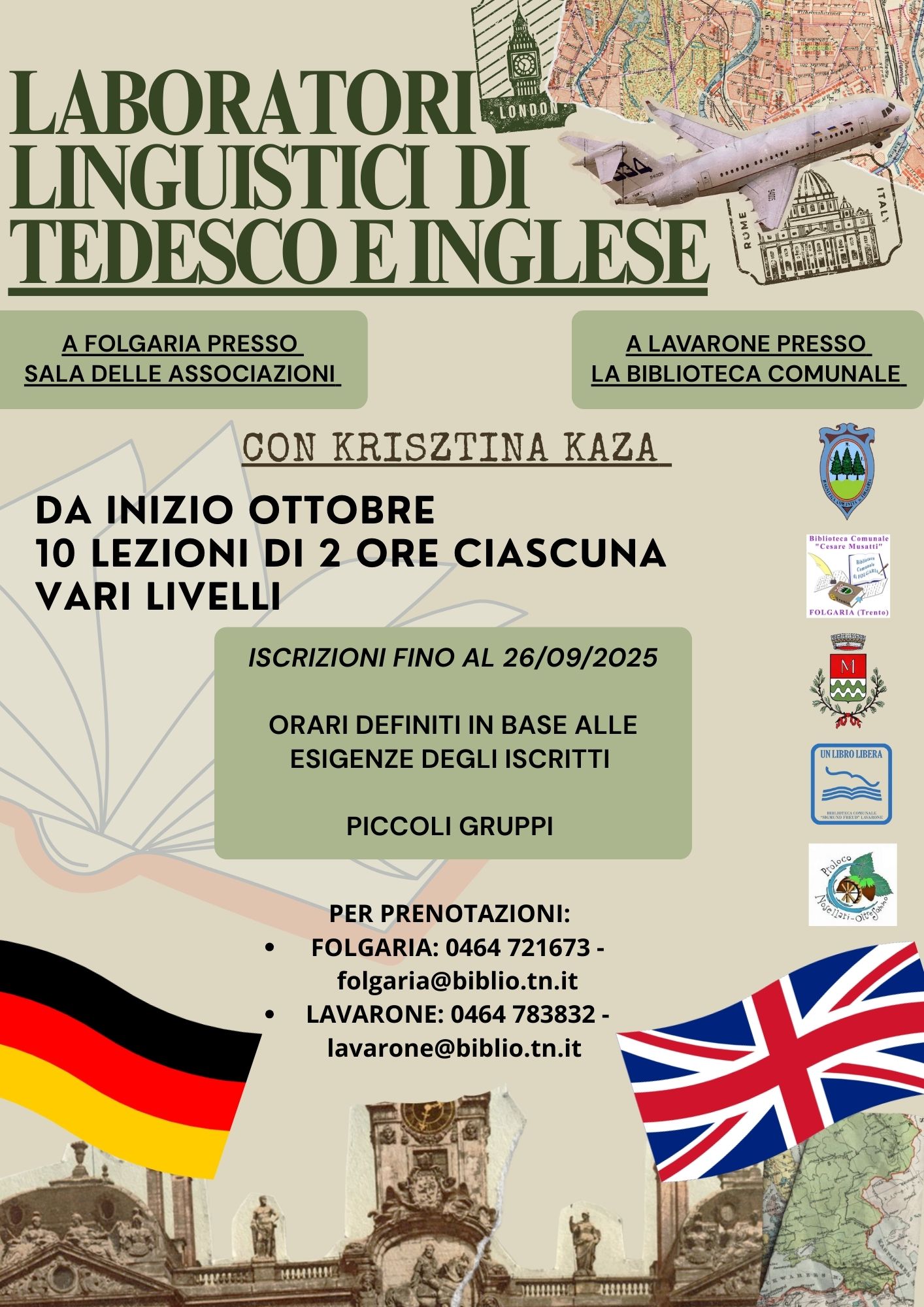Da ottobre inizierà la nuova edizione dei corsi di inglese e tedesco di vario livello a Lavarone e a Folgaria con la prof.ssa Krisztina Kaza.