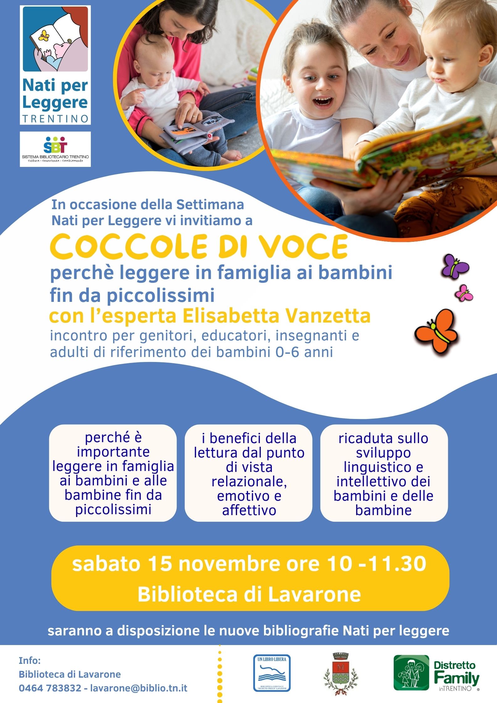 In occasione della settimana Nati per Leggere, la Biblioteca comunale organizza l'incontro "Coccole di voce" con l'esperta Elisabetta Vanzetta, per capire l'importanza della lettura ai bambini 0-6 anni.