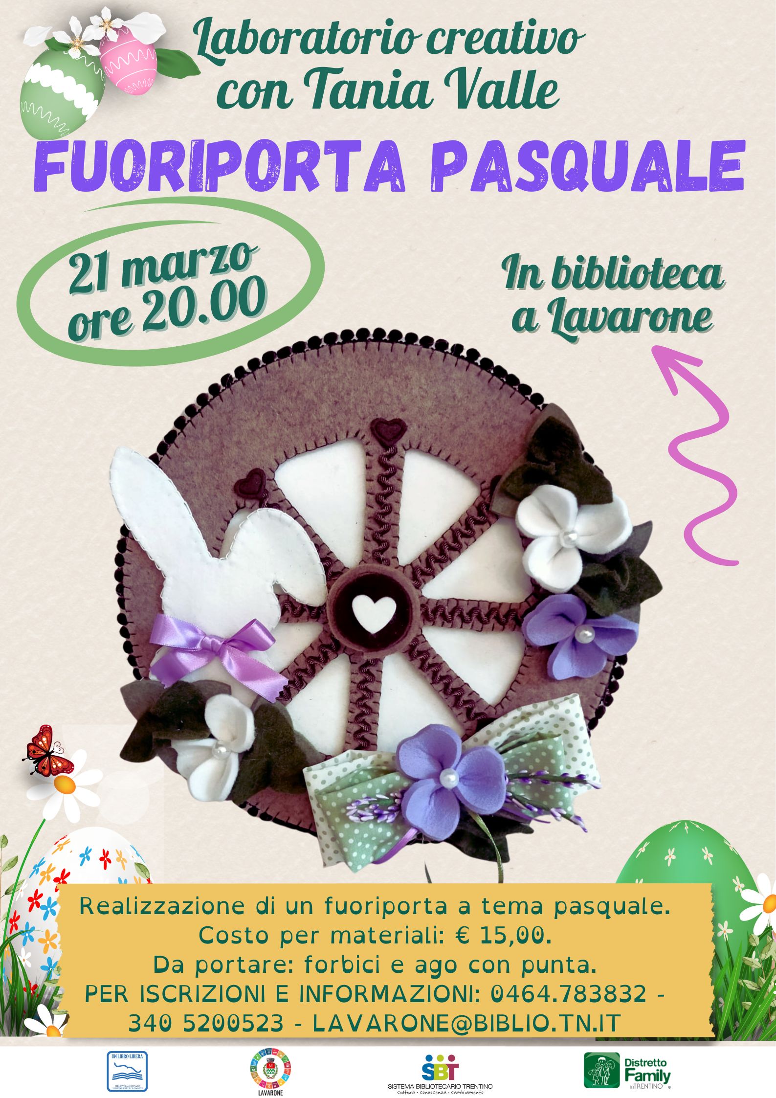 Cos'è Il laboratorio si svolgerà giovedì 21 marzo a partire dalle ore 20.00 nella Sala della Biblioteca di Lavarone. Da portare: forbici, ago con puntaIscrizione obbligatoria